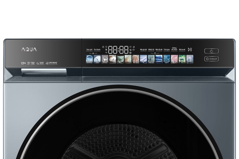 Máy sấy quần áo Aqua tích hợp nhiều chương trình phù hợp với từng loại vải như đồ cotton, đồ lụa, đồ jeans, đồ trẻ em, sấy nhanh 30 phút, sấy AI hoặc sấy theo thời gian, mang lại sự linh hoạt khi sử dụng.