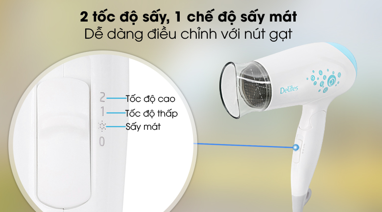 2 tốc độ sấy và chế độ sấy mát tùy chỉnh bằng nút gạt trên tay cầm