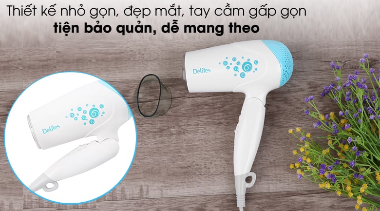 Máy sấy tóc Delites PH3812 - Thiết kế nhỏ gọn, đẹp mắt, tay cầm gấp gọn