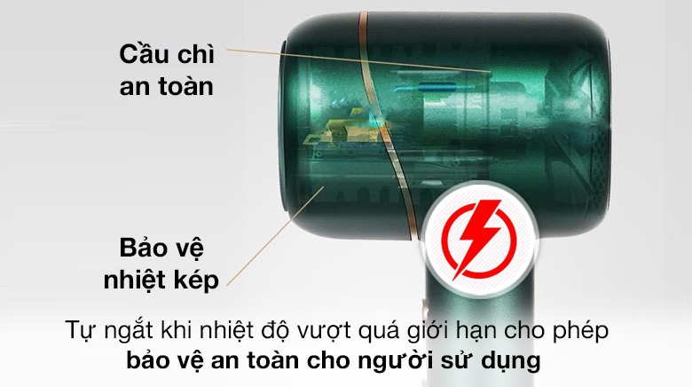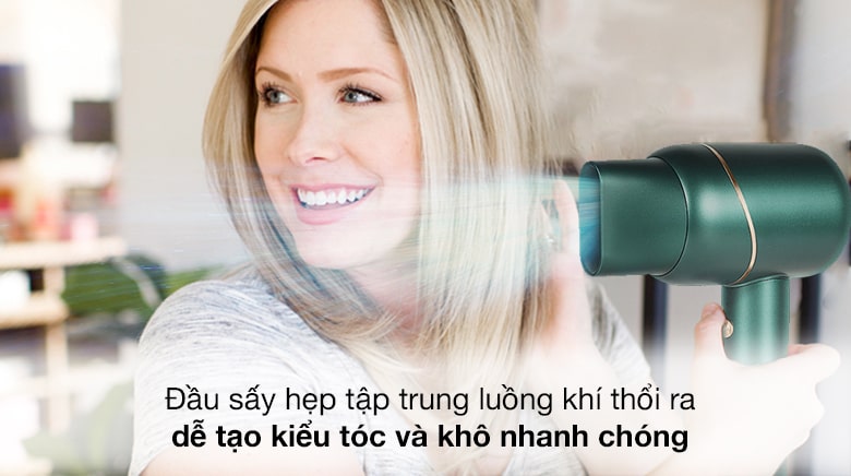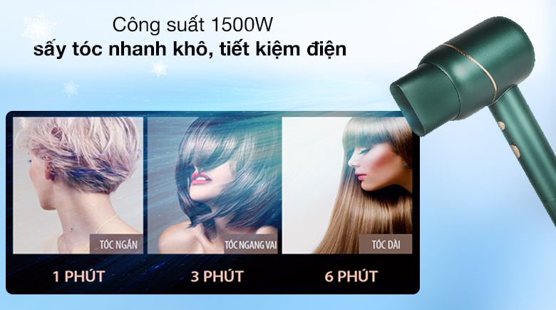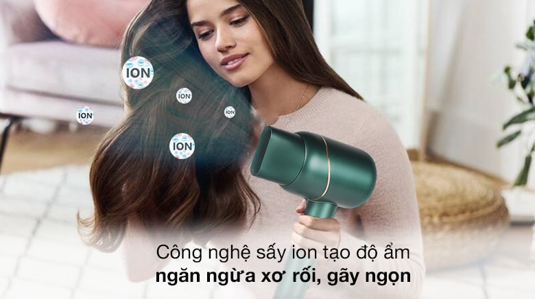 Dưỡng tóc bằng công nghệ kiểm soát nhiệt và ion âm, làm tóc khô nhanh sau khi gội, bổ sung ion âm dưỡng tóc.
