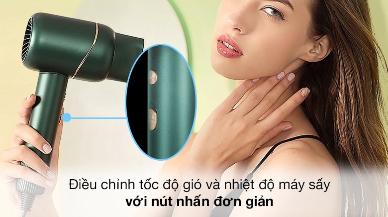 Chế độ chuyển đổi tần số vừa sấy khí mát và khí ấm, chuyển đổi nhiệt độ không khí thông minh với vòi thổi khí cách nhiệt bảo vệ kép.