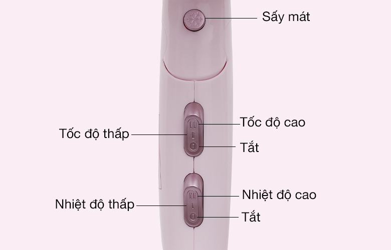 • 2 tốc độ sấy, 2 chế độ cài đặt nhiệt có sấy mát sử dụng thuận tiện.