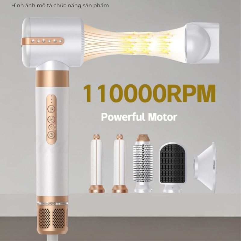 Máy sấy tóc sở hữu công suất 1400W, kết hợp cùng động cơ không chổi than hiện đại, cho phép tạo ra luồng gió mạnh mẽ với số vòng quay trong 1 phút lên đến 110.000RPM. Nhờ đó, tóc bạn sẽ được sấy khô một cách nhanh chóng, tiết kiệm thời gian đáng kể, đặc biệt phù hợp với những người bận rộn.