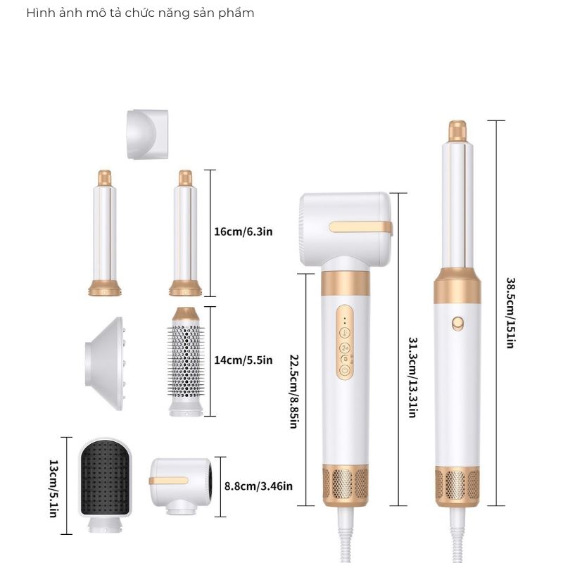 Điểm nổi bật của máy sấy tóc Huaxiang Y-32 chính là bộ 7 đầu sấy đi kèm, mang đến khả năng tạo kiểu tóc đa dạng: