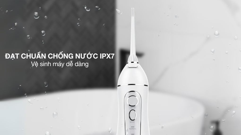 Máy tăm nước Lock&Lock đạt tiêu chuẩn chống nước IPX7, nhờ đó người dùng có thể yên tâm sử dụng máy trong môi trường ẩm ướt như phòng tắm, hoặc vô tư rửa sạch thiết bị dưới vòi nước sau khi sử dụng mà không lo nước xâm nhập gây hư hỏng.
