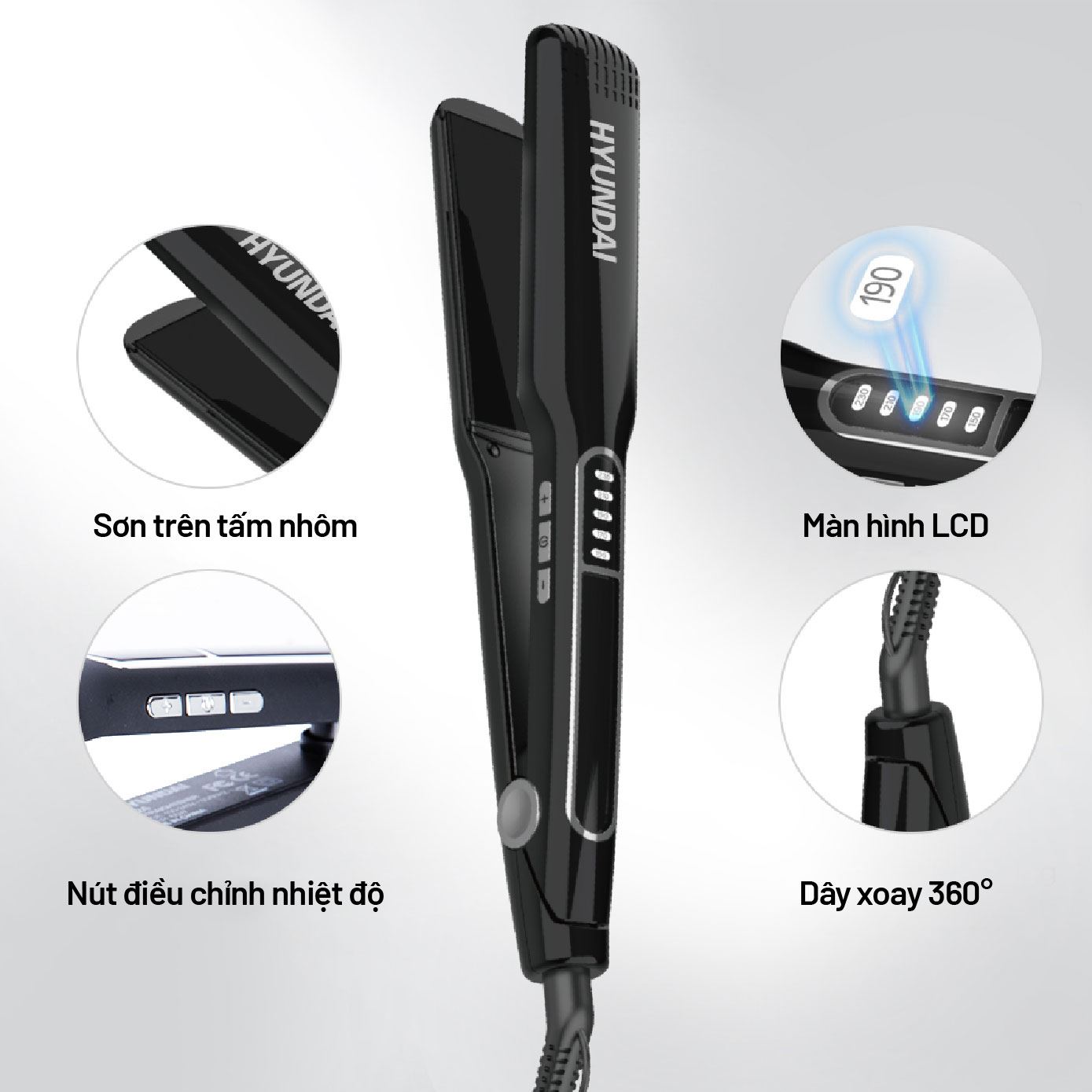 Máy duỗi tóc Hyundai HC-124-BK - Thương hiệu và thiết kế