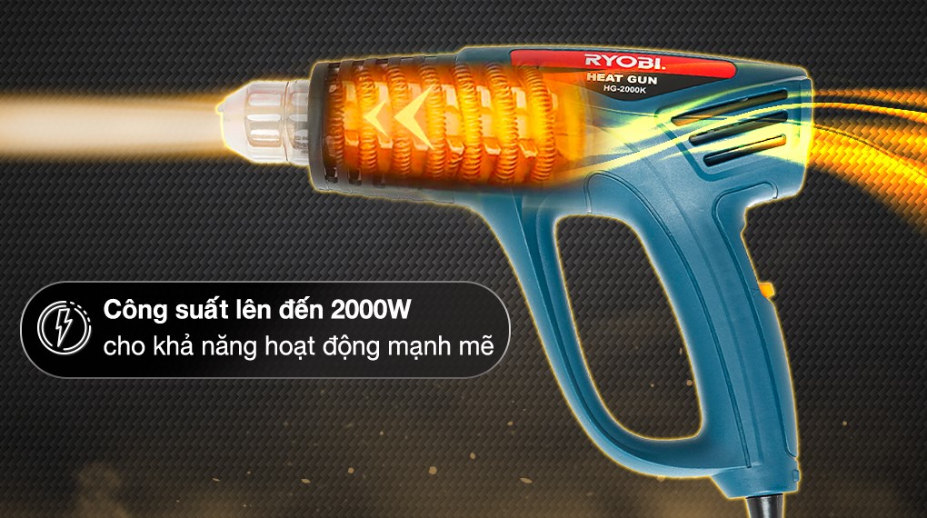 Máy thổi hơi nóng Ryobi HG-2000K mang thiết kế gọn nhẹ, cứng cáp phục vụ tốt các nhu cầu sử dụng nhiệt lớn trên bề mặt vật liệu. 2 mức thổi gió giúp thổi nhanh hơi nóng lên nhiều vị trí khác nhau, tiết kiệm thời gian làm việc hiệu quả.