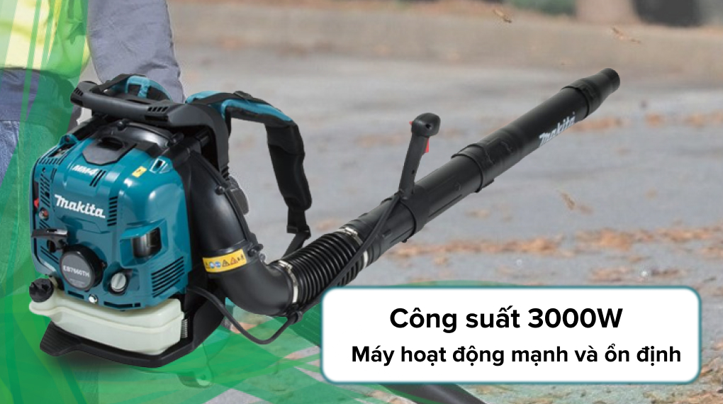 Máy thổi bụi chạy xăng Makita EB7660TH 3000W được thiết kế dạng đeo vai và sử dụng động cơ 4 thì có độ bền cao. Công suất lớn 3000W nên có thể dùng trong lâm nghiệp để phòng tránh cháy rừng, hoặc có thể dùng để thổi lá công nghiệp cao su, gom rác, thổi bụi trong công trường xây dựng.