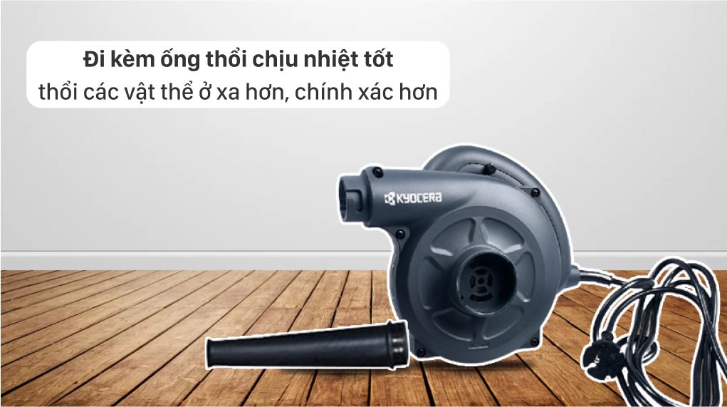 - Máy thổi Kyocera được trang bị ống thổi bằng nhựa chịu nhiệt tốt, hỗ trợ người dùng thổi các vật thể ở xa hơn, thổi chính xác hơn.