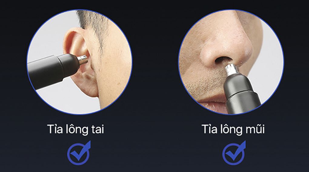 - Máy tỉa lông mũi sở hữu thân máy nhỏ gọn, kiểu dáng hiện đại, dễ cầm nắm và điều khiển chính xác ở các vùng như mũi và tai.