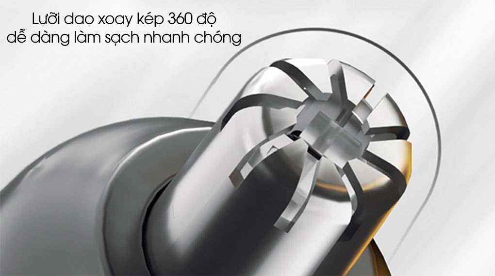- Máy được trang bị hệ thống lưỡi dao kép xoay tròn 360 độ, cho phép cắt tỉa nhanh chóng theo mọi hướng mà không làm tổn thương da.