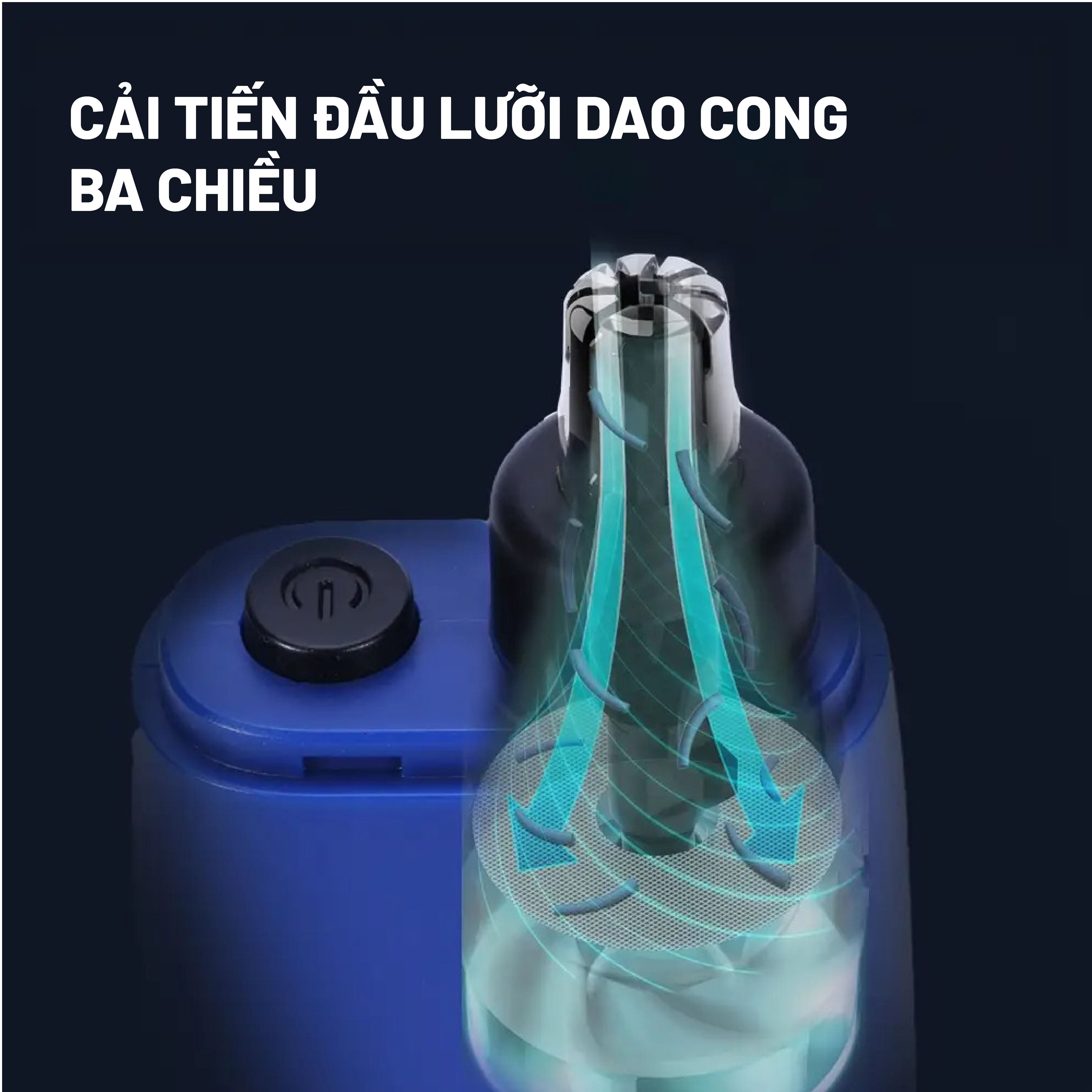 Hyundai FC-052-BU được trang bị lưỡi dao thép không gỉ, hoạt động theo công nghệ 3 chiều. Thiết kế này giúp tăng hiệu quả cắt tỉa, hỗ trợ làm sạch đều lông mũi từ nhiều hướng khác nhau. Chất liệu lưỡi dao bền, hạn chế gỉ sét trong quá trình sử dụng và dễ dàng vệ sinh sau khi dùng.