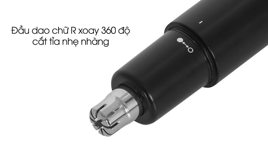- Máy tỉa lông mũi trang bị đầu dao thiết kế hình chữ R, giúp tiếp xúc nhẹ nhàng với da và hạn chế tổn thương khi tỉa lông mũi.