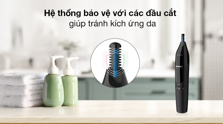 Hệ thống bảo vệ da cung cấp một lớp phủ trên các lưỡi cắt được thiết kế đảm bảo không tiếp xúc với da khi đưa lông mũi, lông tai vào bộ phận cắt một cách an toàn, bảo vệ da không bị trầy xước.