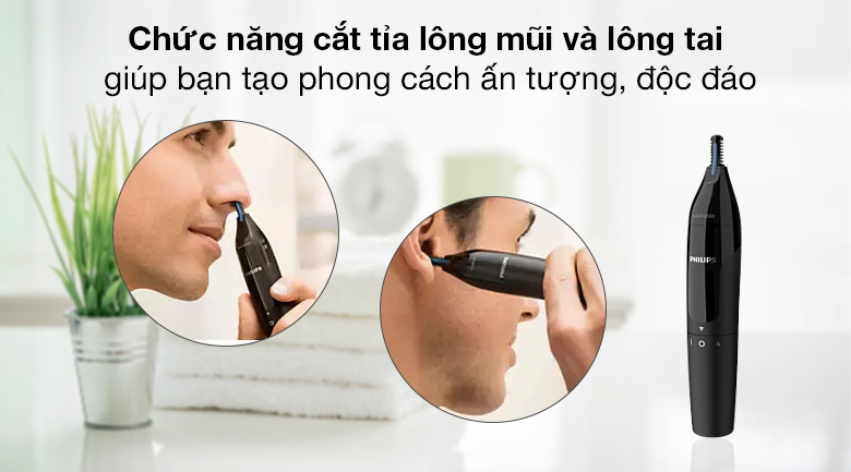 Loại bỏ những sợi lông mũi và lông tai không mong muốn, dễ dàng và thoải mái, đảm bảo lỗ mũi của bạn sạch sẽ. Trước khi sử dụng cần cẩn thận đưa đầu cắt tỉa vào bên trong mũi không quá 0,5 cm và từ từ di chuyển đầu cắt tỉa. Khi cắt tỉa lông tai, hãy đảm bảo tai của bạn sạch sẽ, không có ráy tai.