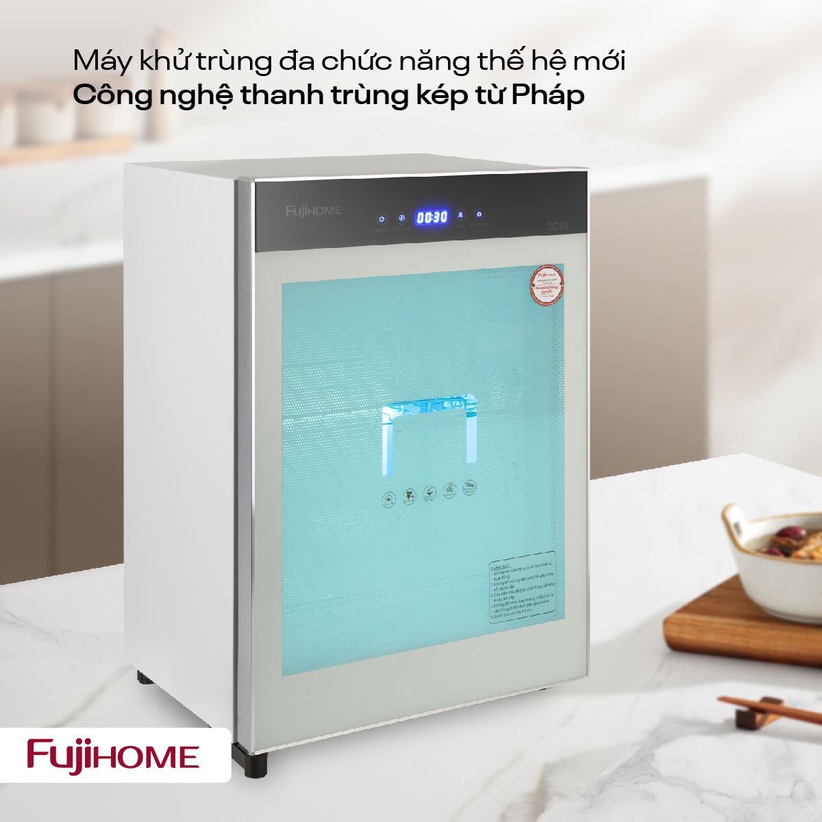 Tủ sấy chén bát tiệt trùng Fujihome DD68 là thiết bị gia dụng hiện đại giúp làm sạch, tiệt trùng và bảo quản chén bát, bình sữa trong môi trường vô trùng an toàn. Sản phẩm ứng dụng công nghệ khử trùng kép UV + Ozone theo tiêu chuẩn Pháp, cho khả năng tiêu diệt vi khuẩn, virus lên đến 99.99%, góp phần bảo vệ sức khỏe cho cả gia đình. Với thiết kế chắc chắn, vận hành an toàn với nhiều chế độ linh hoạt, Fujihome DD68 đặc biệt phù hợp với gia đình có trẻ nhỏ và phụ nữ mang thai.