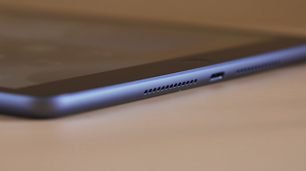 Về màu sắc thì mẫu iPad này có 2 tông màu gồm bạc và xám, nút Home được nằm ở viền dưới của máy tích hợp cảm biến vân tay Touch ID cho phép mở khóa an toàn. Ngoài ra, jack tai nghe 3.5 mm, nút nguồn, tăng/giảm âm lượng, khe cắm SIM được tích hợp ở các cạnh bên cho bạn sử dụng, sạc pin thuận tiện.