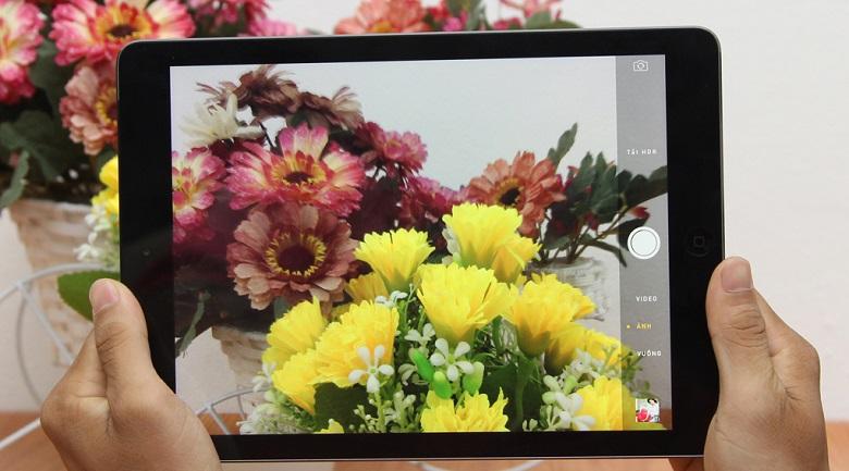 iPad Air  sở hữu camera chính 5MP được cải tiến giúp chụp ảnh thiếu sáng tốt hơn, tốc độ lấy nét nhanh hơn, màu sắc thu được trung thực và chi tiết hơn. Máy cũng có camera trước 1.2MP hỗ trợ người dùng quay phim chuẩn HD để đàm thoại Facetime và chụp ảnh selfie thú vị.