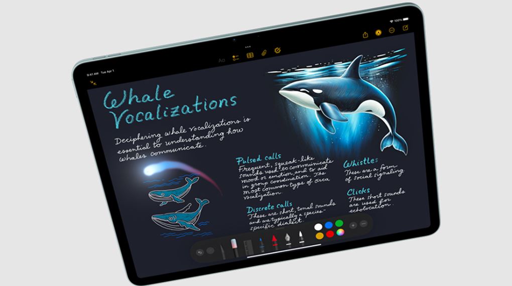 Khi kết hợp với Apple Pencil Pro, iPad Air M3 trở thành công cụ sáng tạo mạnh mẽ. Apple Pencil Pro tích hợp nhiều công nghệ mới như cảm biến bóp, cho phép truy cập nhanh các tùy chọn công cụ chỉ bằng một cái bóp nhẹ vào thân bút. Cảm biến con quay hồi chuyển giúp nhận diện hướng xoay của bút, mang lại khả năng kiểm soát nét vẽ chính xác hơn, đặc biệt hữu ích khi tô bóng hoặc tạo hiệu ứng đặc biệt.