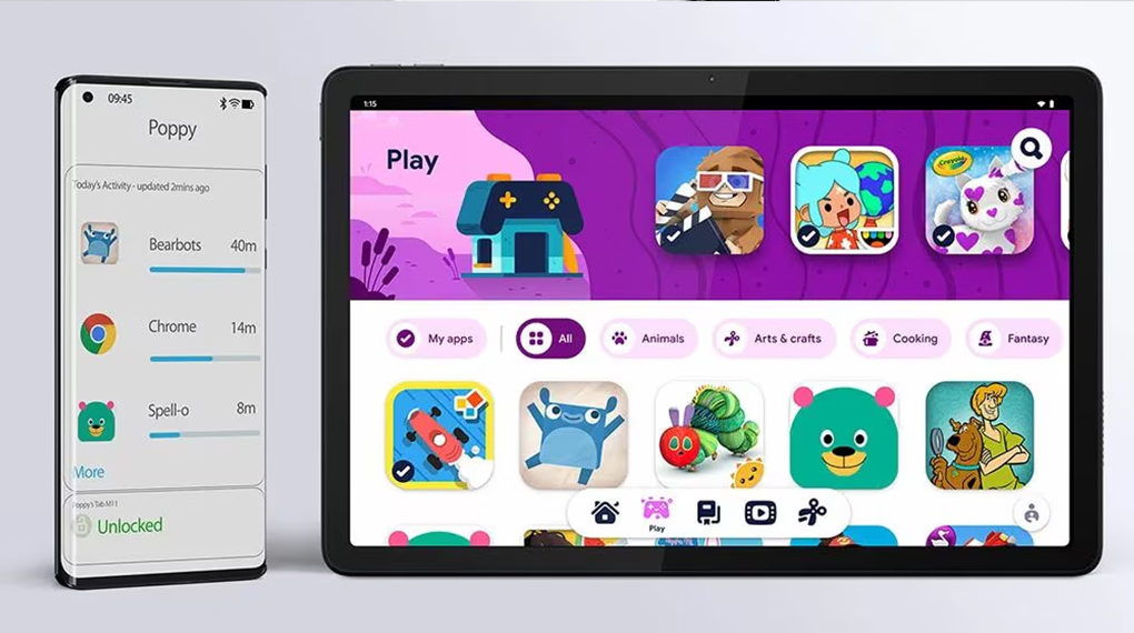Trên Lenovo Tab M11 4G, tính năng Google Kids Space mang đến một môi trường giáo dục và giải trí an toàn cho trẻ em. Với các nội dung đa dạng và phù hợp với độ tuổi, từ sách, ứng dụng đến video, các bé có thể thỏa sức khám phá và học hỏi. Giao diện thân thiện cùng các công cụ kiểm soát dành cho phụ huynh giúp tạo ra một môi trường học tập và giải trí đáng tin cậy.