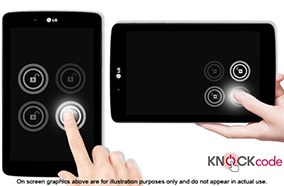 Dễ dàng mở khóa màn hình bằng cách gõ từ 2 đến 8 lần tùy thích theo những thứ tự định sẵn, đây là tiện ích bảo mật mới nhất của LG với tên gọi Knock Code. Có tới hơn 86,000 cách mở khóa khác nhau, nên tính bảo mật rất cao. |