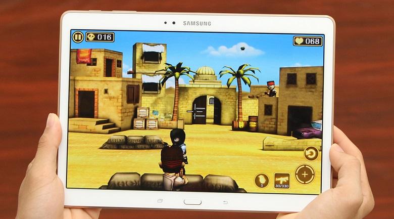Chipset xử lý 8 nhân thế hệ mới Exynos 5420 gồm 4 nhân Cortex A15 xung nhịp 1.9GHz và 4 nhân Cortex A7 xung nhịp 1.3GHz đem đến cho Tab S 10.5 một hiệu suất hoạt động tuyệt vời. Bộ nhớ RAM lên đến 3GB có thể đáp ứng mượt mà các ứng dụng đa nhiệm. Bạn cũng có thể thoải mái cài đặt ứng dụng và lưu trữ dữ liệu thoải mái với bộ nhớ trong 16GB và khe cắm thẻ nhớ mở rộng lên đến 64GB.