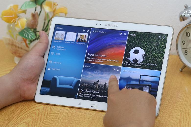 Samsung Galaxy Tab S 10.5 sử dụng màn hình Super AMOLED cho màu sắc hiển thị sặc sỡ, nịnh mắt. Bên cạnh đó, độ phân giải siêu cao 2560x1600 góp phần hiển thị rõ nét hơn những chi tiết, mang lại cho bạn những hình ảnh sống động và đầy đủ nhất. Xem phim, lướt web hay chơi game sẽ thực sự thú vị trên kích thước màn hình rộng 10.5 inch của siêu phẩm này.