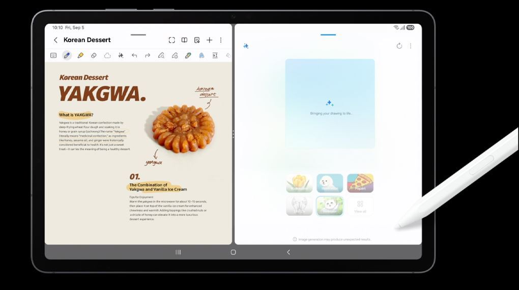 Bút S Pen trên dòng Tab S11 được cải tiến với khả năng tương tác mở rộng, bao gồm tính năng phác thảo thông minh và khoanh tròn để tìm kiếm với Google. Giờ đây, bạn có thể tìm kiếm thông tin ngay trên màn hình mà không cần chuyển đổi ứng dụng. Đối với những ai yêu thích phong cách làm việc như trên máy tính để bàn, Samsung DeX cung cấp một giao diện đa nhiệm chuyên nghiệp, tận dụng tối đa diện tích màn hình 11 inch.