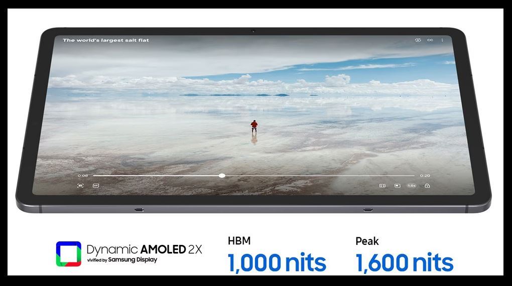 Màn hình của chiếc máy tính bảng này có kích thước 11 inch, hiển thị sắc nét từng chi tiết nhỏ nhờ độ phân giải 1600 x 2560 pixels. Công nghệ Dynamic AMOLED 2X tiên tiến đảm bảo tái tạo màu sắc chân thực và sống động, đồng thời giảm thiểu lượng ánh sáng xanh độc hại, giúp bảo vệ thị lực của người dùng khi làm việc hoặc giải trí liên tục, đặc biệt vào ban đêm.