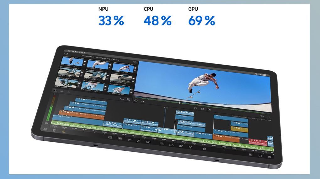 Samsung Galaxy Tab S11 được trang bị vi xử lý Dimensity 9400+ với 8 nhân, đạt xung nhịp tối đa 3.73 GHz, đảm bảo khả năng vận hành ổn định và mượt mà cho mọi phần mềm chuyên dụng. Kết hợp cùng chip đồ họa ARM Immortalis-G925, thiết bị dễ dàng đáp ứng các nhu cầu cơ bản về render video và chạy ứng dụng 3D. Cấu hình mạnh mẽ này giúp các tác vụ hàng ngày diễn ra trơn tru, hạn chế tối đa tình trạng giật lag ngay cả khi xử lý công việc nặng.