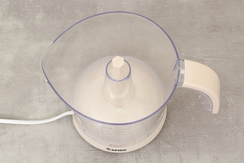 - Máy vắt cam Rapido sở hữu thiết kế nhỏ gọn, dễ di chuyển và không chiếm nhiều diện tích bếp. Gam màu trắng kem tươi tắn, phù hợp với mọi không gian bếp.
