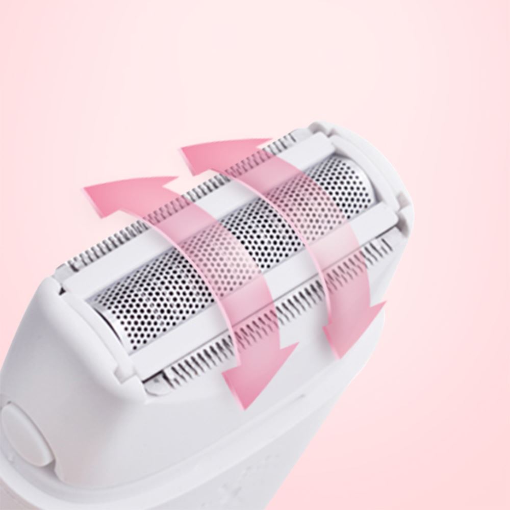 Máy làm sạch lông POVOS sử dụng hệ thống lưỡi dao kép kết hợp lưới dao mỏng để cắt sát phần lông khi tiếp xúc với da. Khi vận hành, lưỡi dao bên trong sẽ chuyển động để cắt lông lọt qua lớp lưới bảo vệ, từ đó giúp hạn chế tiếp xúc trực tiếp giữa lưỡi dao và da. Cách hoạt động này khá phổ biến ở các dòng máy cạo cá nhân, giúp người dùng dễ hiểu và dễ sử dụng mà không cần làm quen với công nghệ phức tạp như máy triệt lông IPL.