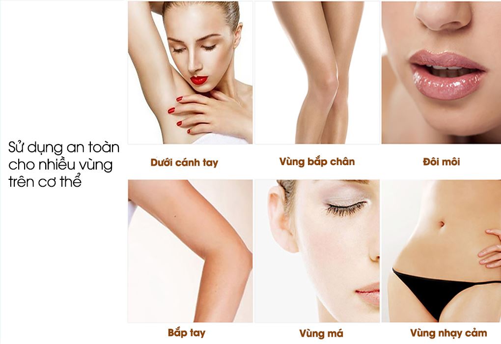 Với đầu cạo an toàn, máy có thể sử dụng để làm sạch lông ở nhiều vùng khác nhau trên cơ thể như tay, chân, vùng nách, bikini,... mà không gây đau rát.