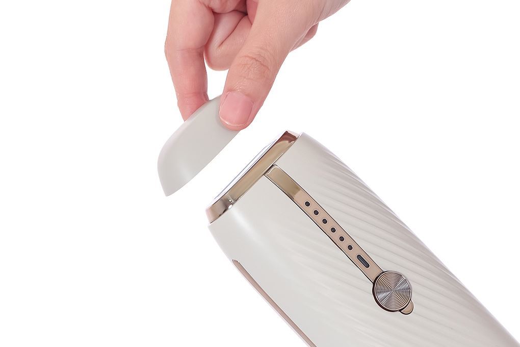 Chiếc máy triệt lông này gây ấn tượng với ngoại hình thanh lịch, tông màu kem nhã nhặn, tạo cảm giác tinh tế ngay từ ánh nhìn đầu tiên. Thân máy được bo cong nhẹ, ôm gọn trong lòng bàn tay, giúp người dùng cầm chắc và thao tác linh hoạt trên nhiều vùng da khác nhau.