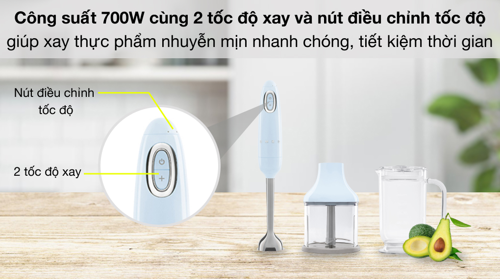 Công suất lớn 700W giúp xay thực phẩm nhanh hơn, tiết kiệm thời gian, công sức của bạn mỗi khi chế biến thực phẩm cho gia đình. Máy xay sinh tố có 2 tốc độ xay gồm 1 tốc độ thường và 1 tốc độ Turbo. Tốc độ Turbo có khả năng xay nhanh và mạnh hơn chế độ thường.