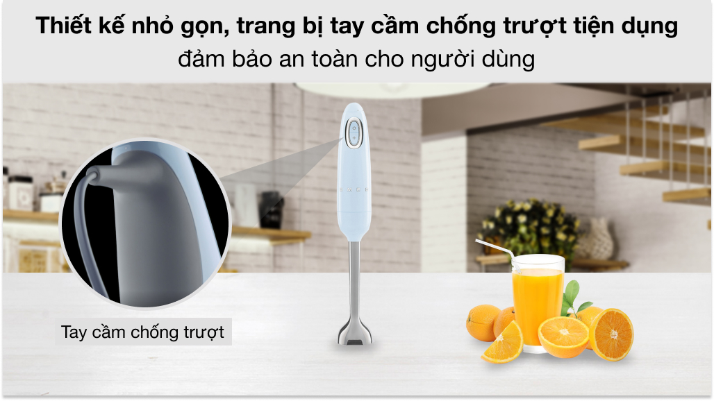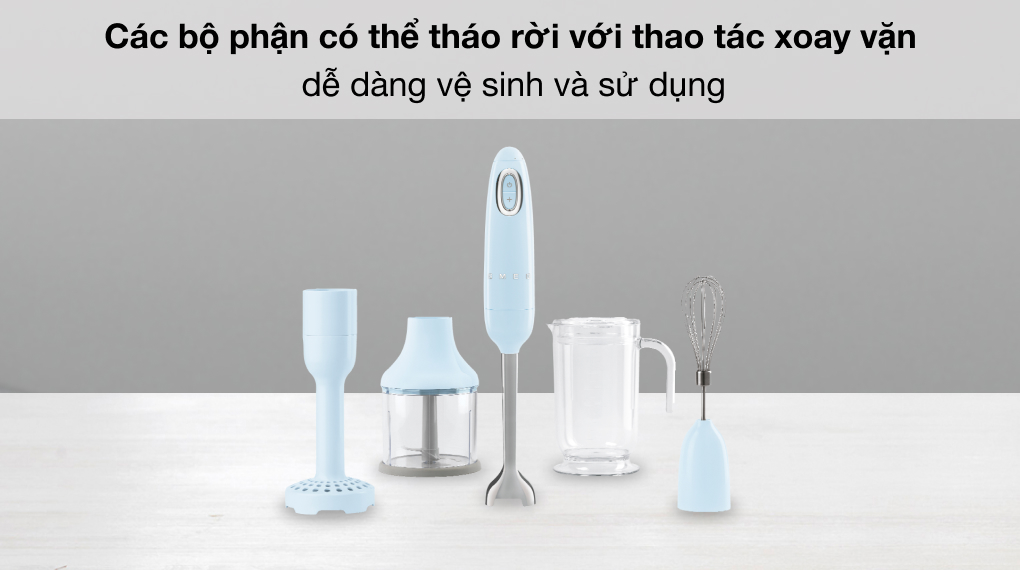 Máy xay cầm tay Smeg HBF02PBEU (535.43.610) với thiết kế gọn nhẹ, dễ sử dụng, có thể xay nhuyễn trực tiếp thực phẩm trong cốc, nồi,... tiện lợi. Đây là sản phẩm gia dụng hữu ích cần có cho căn bếp của mọi nhà, hỗ trợ bạn phục vụ những món ăn và thức uống thơm ngon cho các thành viên trong gia đình.