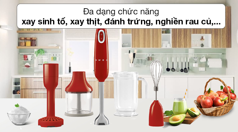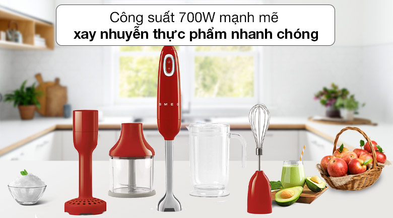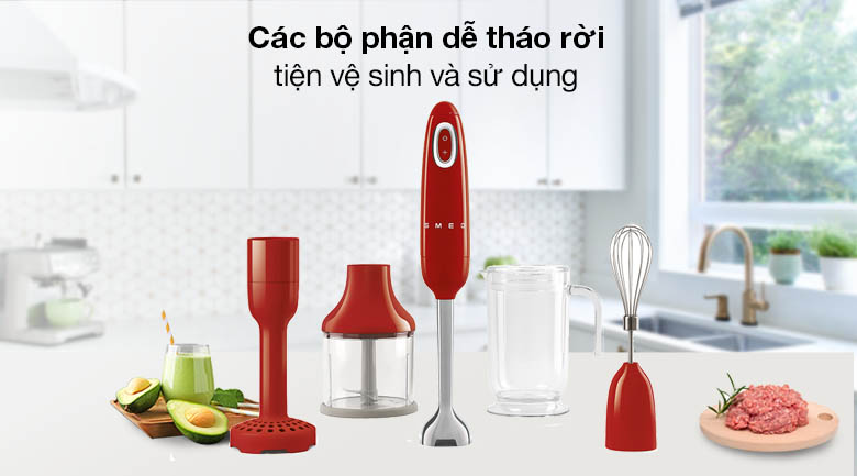 Máy xay cầm tay Smeg HBF02RDEU (535.43.619) thiết kế gọn đẹp dễ dàng sử dụng, xay nhuyễn thực phẩm nhanh chóng, tiết kiệm thời gian. Sản phẩm chính là trợ thủ đắc lực, hỗ trợ bạn mang đến những món ăn và thức uống thơm ngon, bổ dưỡng mỗi ngày cho các thành viên trong gia đình.