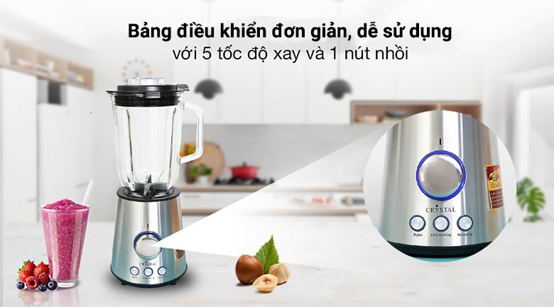 Máy xay sinh tố Crystal hỗ trợ bạn tùy chỉnh tốc độ xay phù hợp với từng loại thực phẩm. Với mức nhỏ có thể xay những thực phẩm mềm như bơ, cà chua,... đến mức mạnh dùng để xay những nguyên liệu cứng hơn như đá bi.
