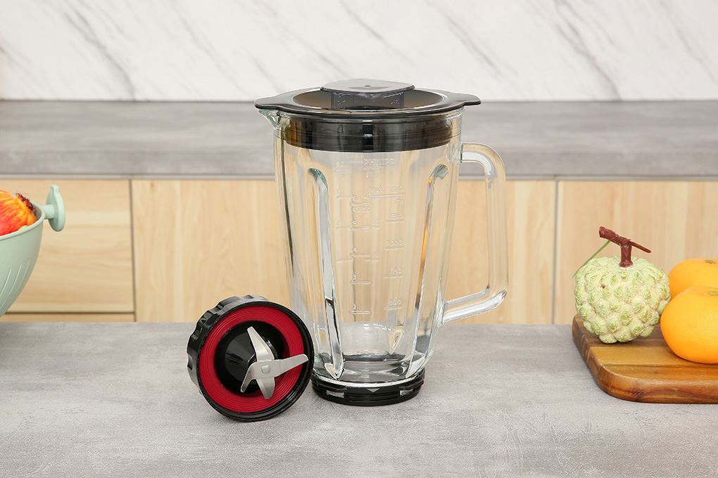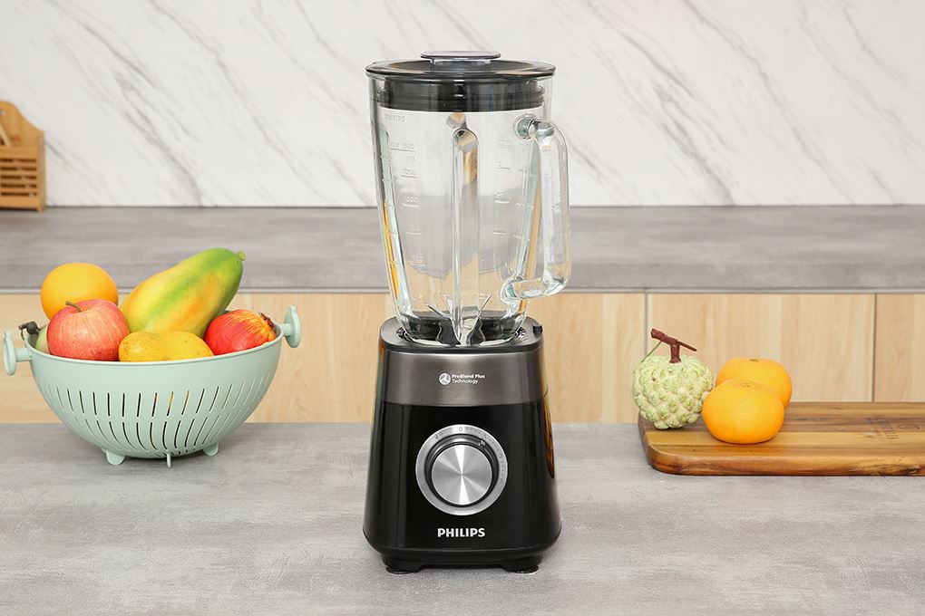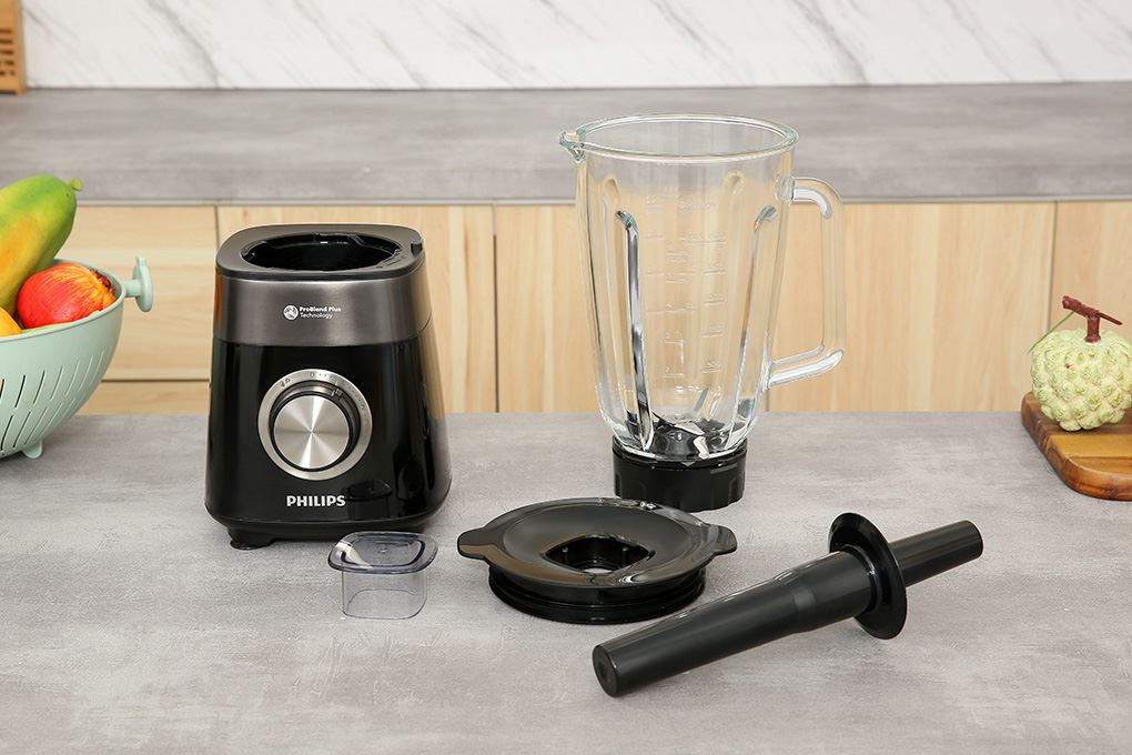 - Máy xay sinh tố Philips thủy tinh được trang bị 1 cối xay chính có dung tích 1.5 lít có khả năng xay nhuyễn đa dạng các loại thực phẩm như: xay sinh tố, xay đá, xay thực phẩm khô, xay rau củ, xay hạt,... vừa có thể mang lại những ly sinh tố giải khát thơm ngon vừa hỗ trợ nhu cầu sơ chế thực phẩm và gia vị khi nấu ăn.