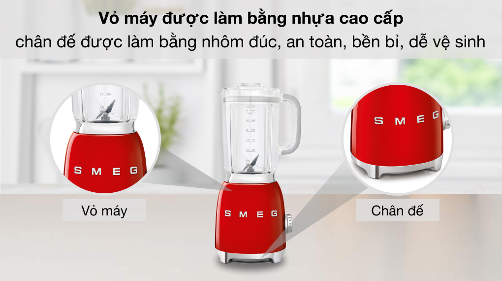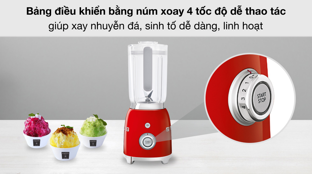 Máy xay sinh tố Smeg BLF01RDEU (535.43.639) với công suất lớn 800W cùng bảng điều khiển nút nhấn và núm xoay 4 tốc độ - 2 chế độ giúp dễ sử dụng, xay thực phẩm nhanh chóng. Đây là một sản phẩm tiện lợi, giá tốt, đảm bảo mang lại sự hài lòng cao nhất cho khách hàng khi chọn mua và sử dụng.