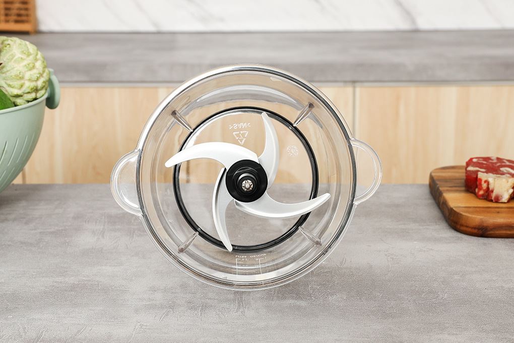 Dung tích cối sử dụng 2 lít khá rộng rãi, phù hợp với gia đình đông người hoặc những lần cần xay nhiều thịt, rau củ, gia vị trong một mẻ, không phải chia nhỏ quá nhiều lần.