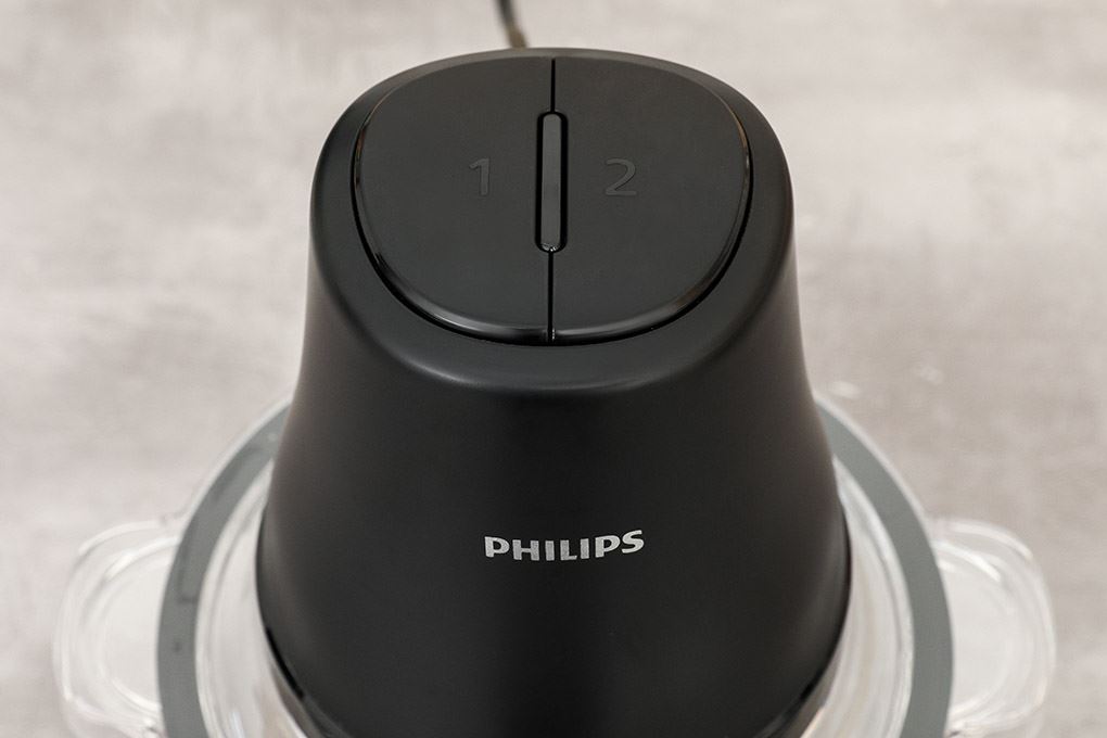 Máy xay thịt Philips sử dụng bảng điều khiển dạng nút nhấn với 2 mức tốc độ. Tốc độ thấp thích hợp xay các nguyên liệu mềm như hành, tỏi, rau thơm hay rau củ nấu canh, trong khi tốc độ cao dùng cho thịt, hạt hoặc khi cần nghiền đá. Việc điều chỉnh đơn giản, chỉ cần chọn đúng nút tương ứng với loại nguyên liệu là máy bắt đầu hoạt động.