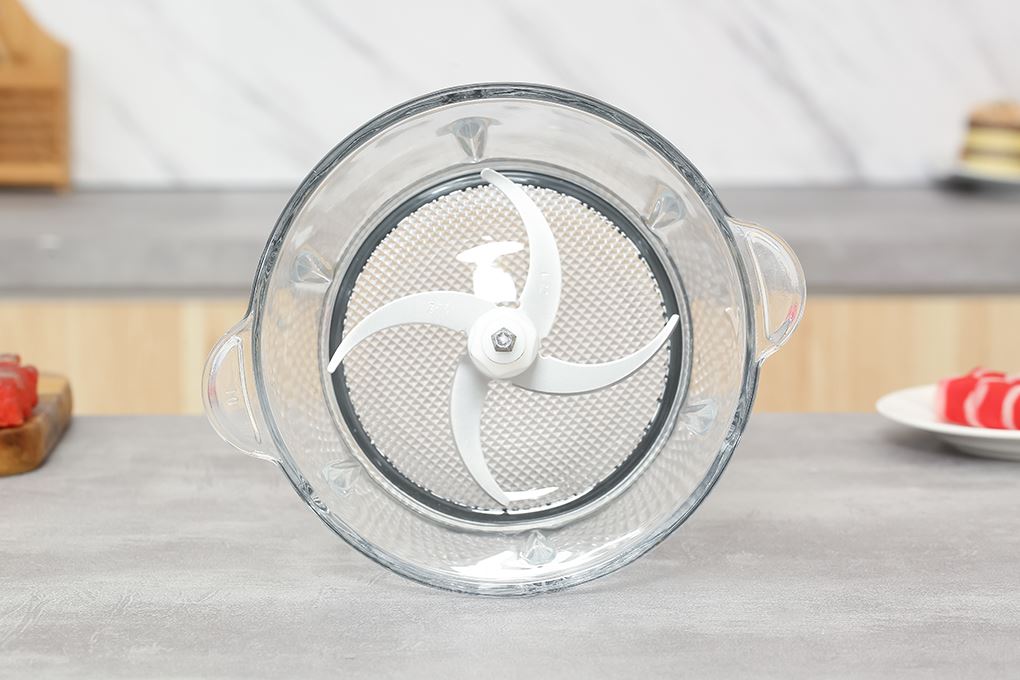 - Máy được trang bị cối xay thịt dung tích 2 lít làm bằng thủy tinh bền bỉ, chống bám mùi, dễ vệ sinh, đảm bảo an toàn vệ sinh thực phẩm.