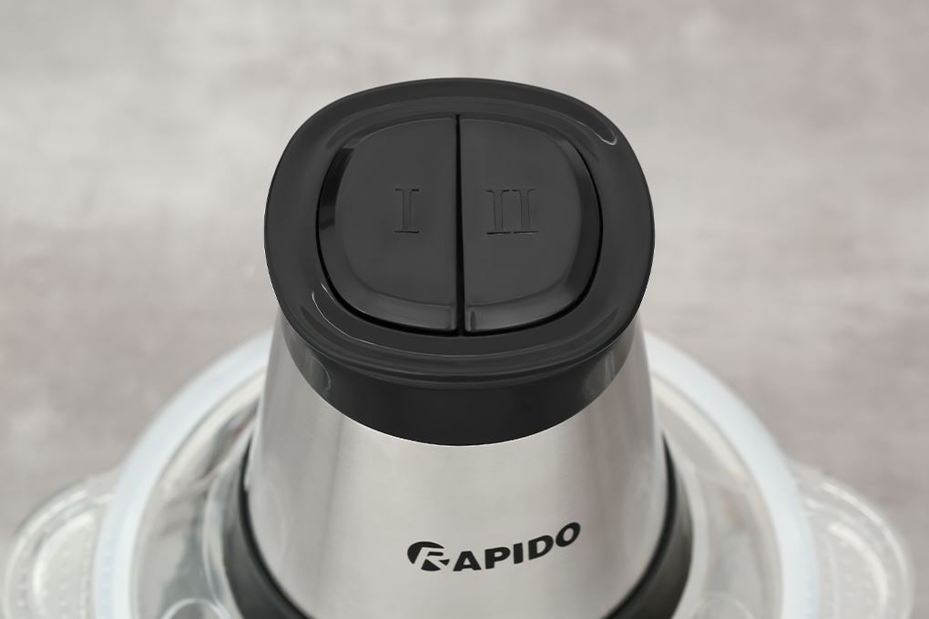 - Máy xay thịt Rapido có thiết kế gọn nhẹ tiện lợi, sở hữu gam màu bạc inox sáng bóng, thêm phần sang trọng và thanh lịch cho căn bếp.