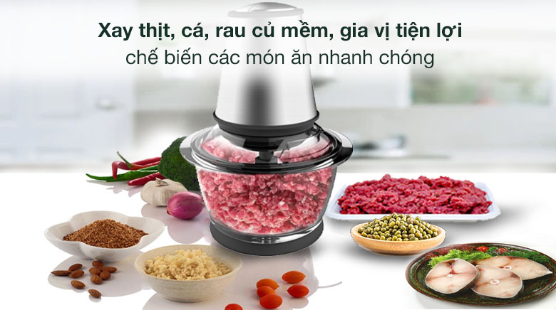 • Đa dạng chức năng: xay thịt, cá, rau củ mềm, gia vị,... tiện lợi và hiệu quả.