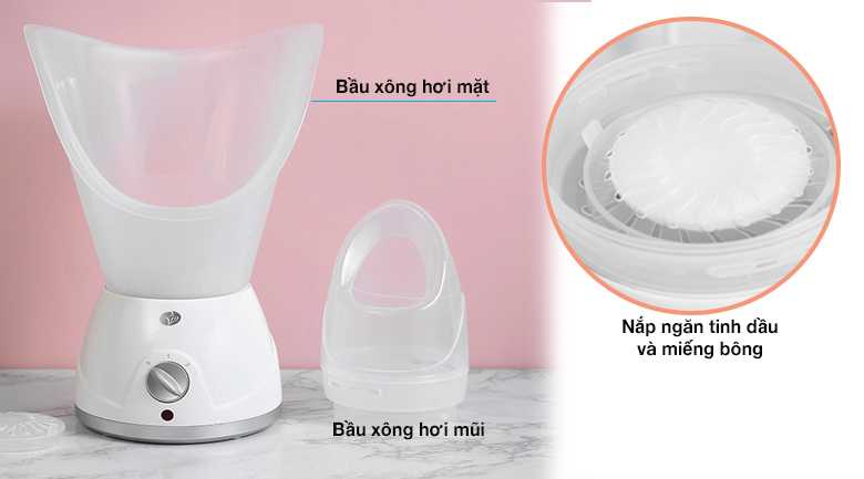 Đi kèm máy có bầu xông hơi mặt và bầu xông mũi cho bạn tiện xông mũi họng, hạn chế các bệnh về đường hô hấp, giảm tắc nghẽn do xoang