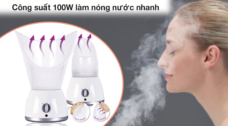 Máy xông hơi mặt hoạt động bằng nguồn điện trực tiếp, công suất 100W, cho khả năng làm nóng nước nhanh