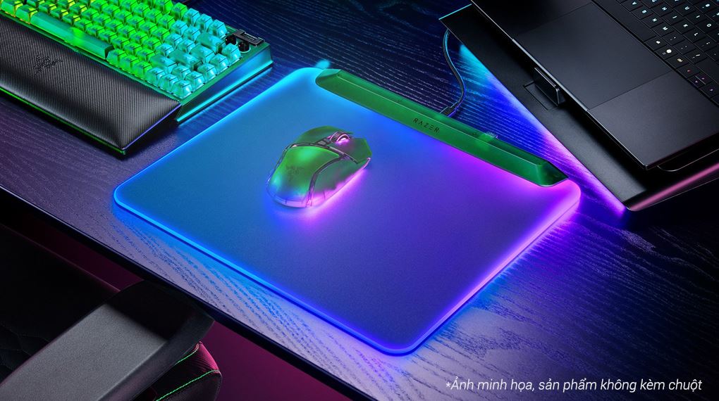 Thông qua nền tảng Razer Chroma RGB với 15 vùng sáng độc lập, người dùng có thể tùy chỉnh màu sắc, hiệu ứng và đồng bộ hoàn hảo với bàn phím, chuột, tai nghe hoặc toàn bộ hệ sinh thái Razer. Khả năng hiển thị ánh sáng theo từng tựa game hoặc sự kiện trong game giúp tấm lót chuột không chỉ đẹp mà còn tương tác trực tiếp với trải nghiệm chơi.