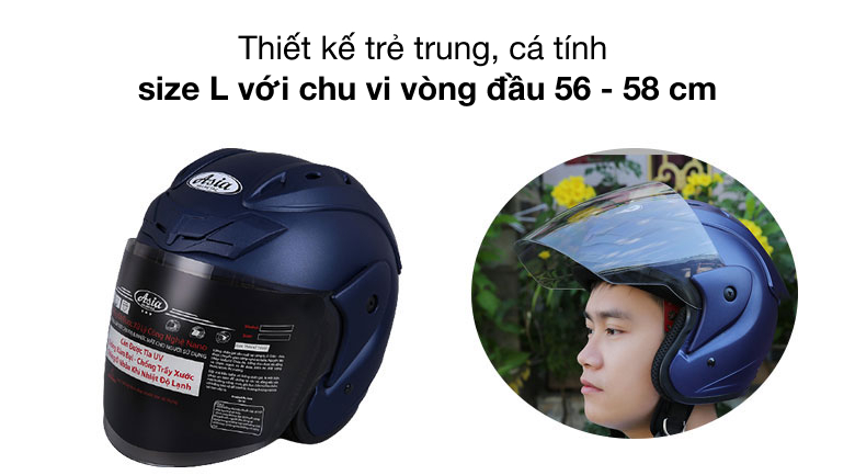 Mũ bảo hiểm Asia có kính dùng để chắn bụi và gió, giúp bảo vệ mắt khi đi đường xa hay đi với tốc độ nhanh. Phần kính có thể điều chỉnh lên xuống tiện lợi.