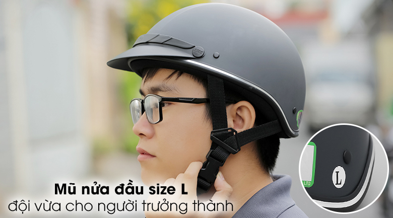Mũ bảo hiểm 1/2 size L Delites ATN04 đen xám, sản phẩm bảo vệ vùng đầu khi tham gia giao thông tin cậy của thương hiệu Delites và sản xuất tại Việt Nam, với mẫu mã thời trang, chất lượng tốt, giá cả phải chăng, lựa chọn đúng đắn cho người tiêu dùng Việt.